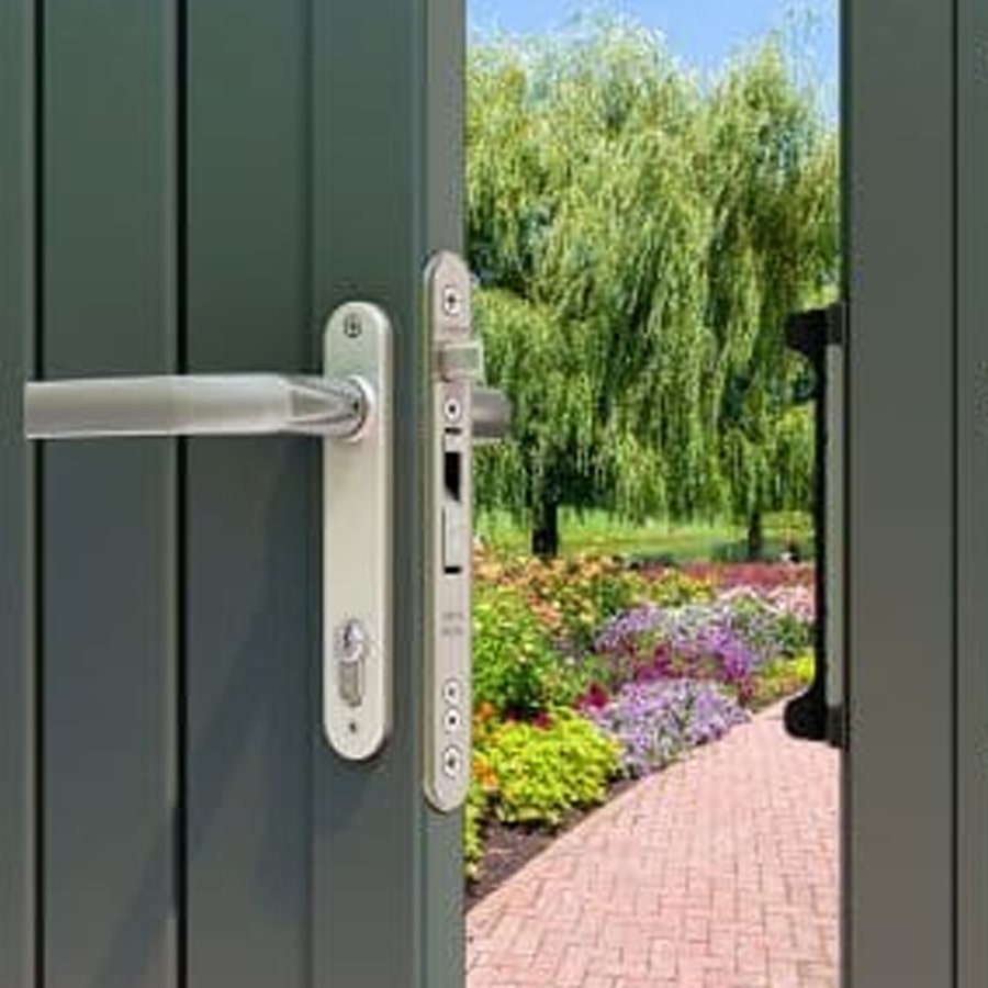Vaša vrtna vrata so čez leto izpostavljena različnim vremenskim vplivom. Zato so ključavnice zasnovane z odpornostjo proti koroziji in vremenskim razmeram, kar zagotavlja dolgotrajen sijaj in funkcionalnost tudi v najtežjih pogojih.