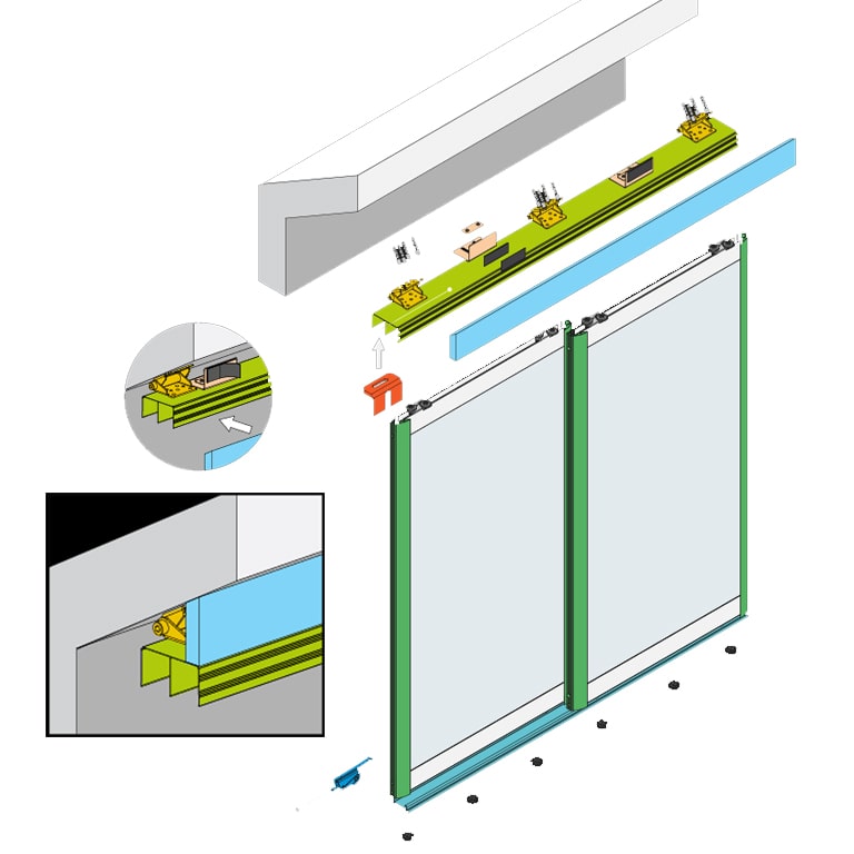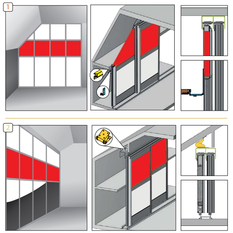 ■ okovje za drsna vrata pod naklonom (mansardna vgradnja)