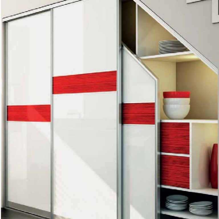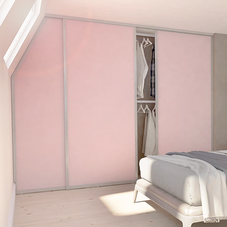 Okovje LAGUNA SLOPING za drsna vrata omar pod naklonom je posebej zasnovano za prostore s poševnimi stenami, na primer v mansardah. Omogoča gladko drsenje vrat pod ali proti naklonu, kar je prilagojeno notranjosti prostora. Zgornja vodilica se namesti pod kotom, okovje pa se temu prilagodi, da zagotovi stabilnost in nemoteno uporabo. Takšen sistem je idealen za omare in pregrade v prostorih z mansardnimi stenami oziroma stenami pod naklonom.