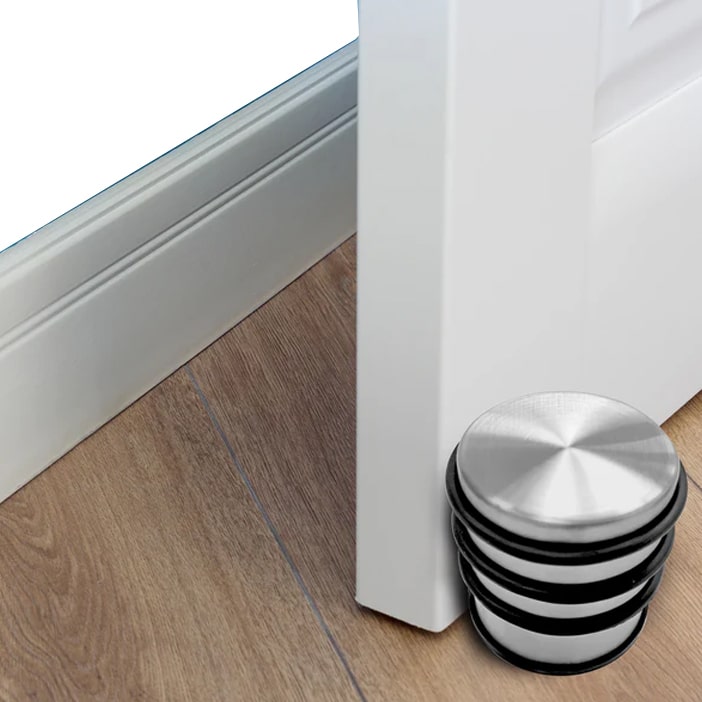 Zaustavljalec vrat (stoper) robustne zasnove, namenjen za enostavno postavljanje in odstranjevanje ter široko uporabo. Narejen je iz kakovostnega nerjavečega INOX jekla. Okoli trdnega kovinskega cilindričnega telesa se nahaja kakovosten gumijast obroč, ki ublaži in utiša udarce v primeru nenadnega odpiranja vrat ter ščiti pred poškodbami sten, kljuk ali pohištva.